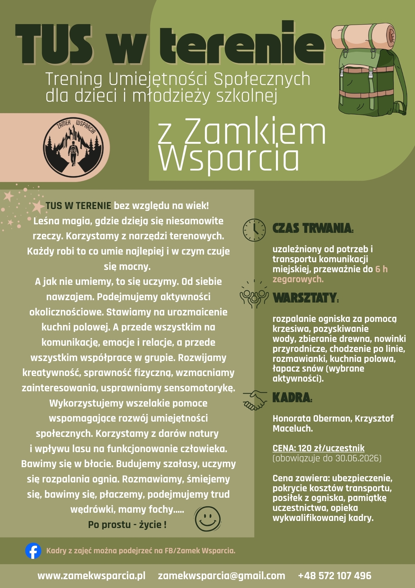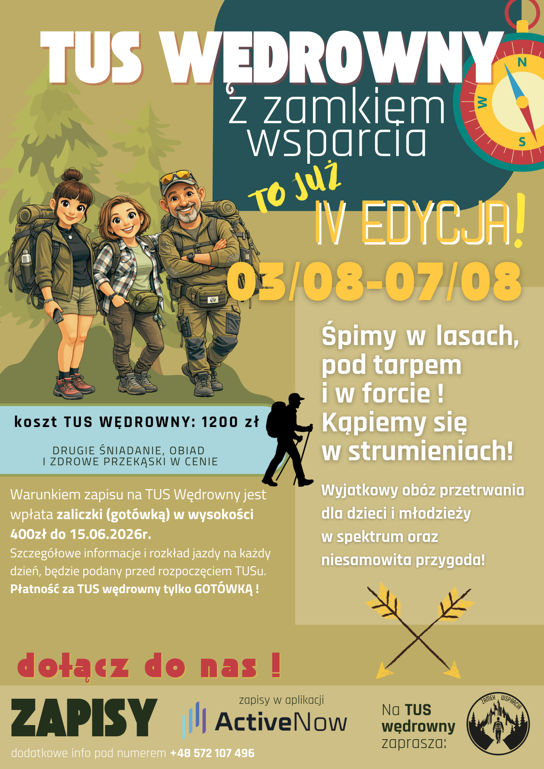 TUS Wędrowny to coś więcej niż zwykły obóz. To kilka dni w naturze, gdzie dzieci i młodzież uczą się radzić sobie w realnych sytuacjach, budują pewność siebie i po prostu dobrze się bawią. Śpimy w lesie, pod tarpem i w forcie. Gotujemy, działamy razem, jesteśmy w ruchu. Są strumienie, ognisko,..