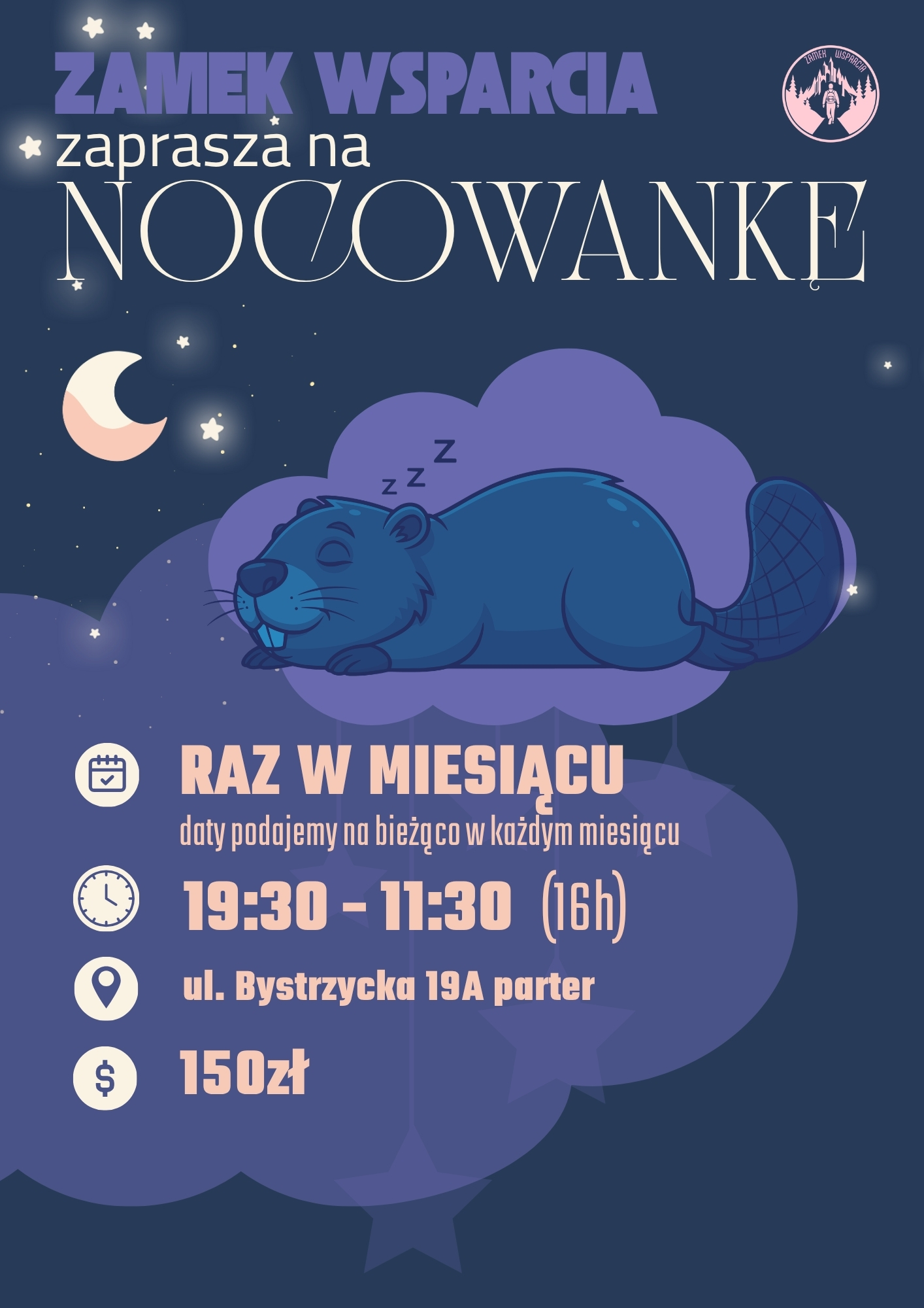 W styczniu 2026 roku wprowadzamy w Zamku Wsparcia nową formę spotkań – Nocowankę, czyli nocne wydarzenie integracyjne połączone z zabawą, rozmową i wspólnym spędzaniem czasu w bezpiecznej, znanej przestrzeni. Nocowanka to propozycja dla dzieci i młodzieży, która łączy elementy relacyjne, integracyjne i rekreacyjne – w spokojnej atmosferze, z uważnością na..