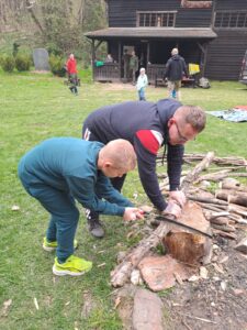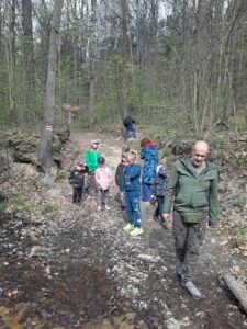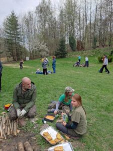 Niedziela zaczęła się deszczowo, ale tylko na chwilę. Pogoda szybko ustąpiła miejsca dobrej energii i zaangażowaniu uczestników. Wspólne spotkanie odbyło się w dobrze już znanym miejscu – Odyńcówce, która od dwóch lat towarzyszy tej inicjatywie i naturalnie wpisała się w mapę leśnych wypraw.